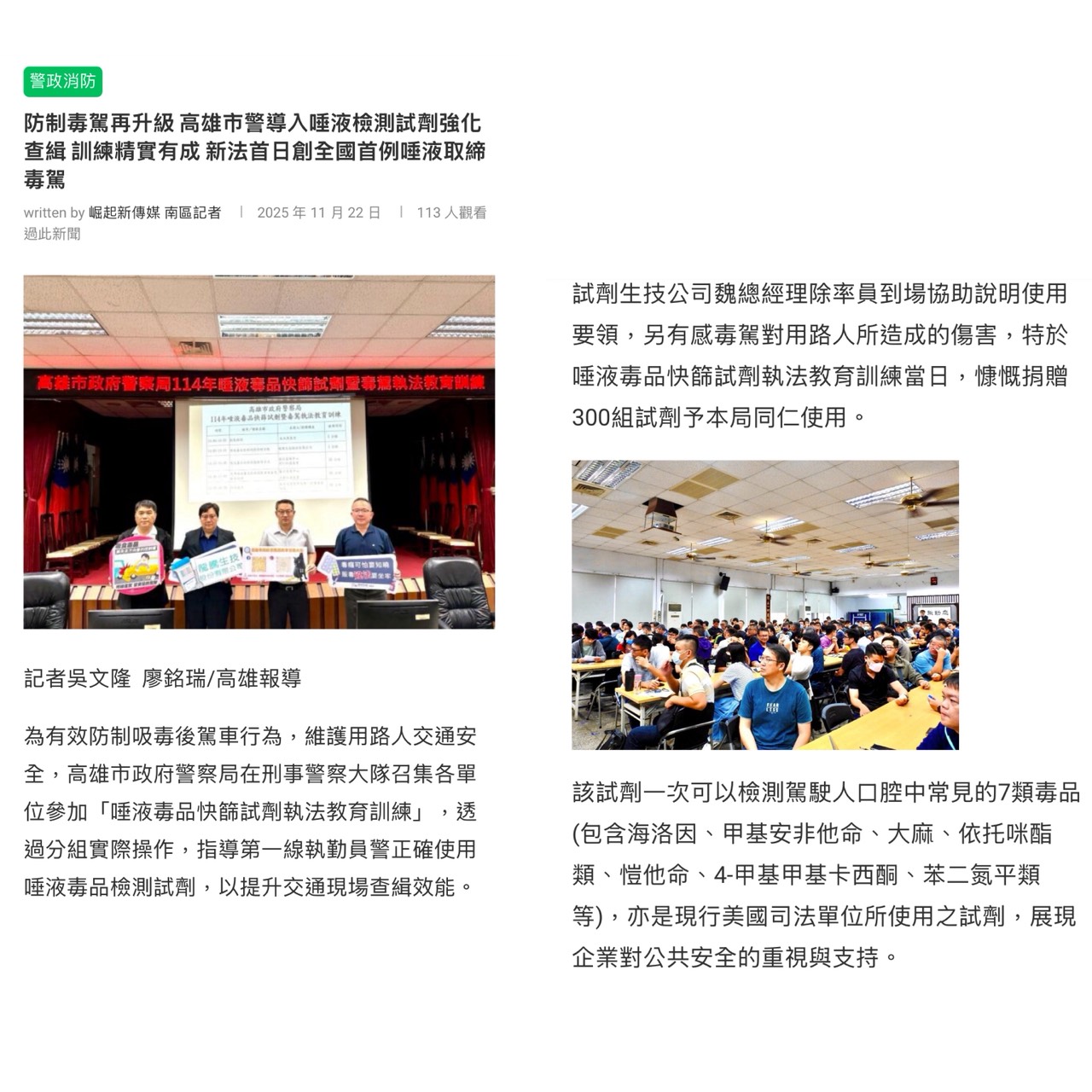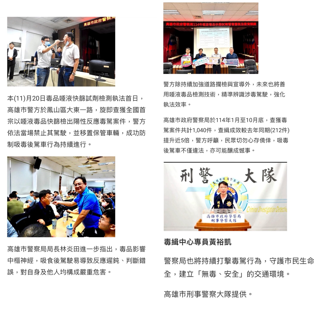 防制毒駕再升級,高雄刑大導入「唾液品快篩」